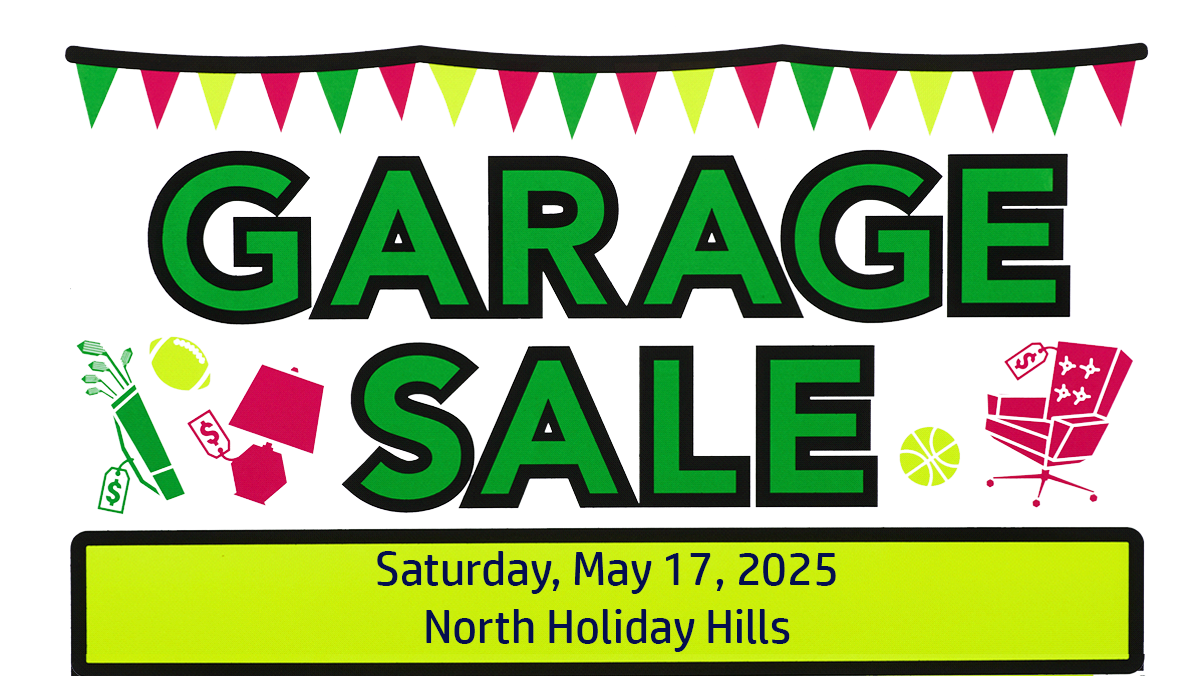 The Annual Garage Sale will be held Saturday, May 17, 2025 at 8 AM. No registration is required.